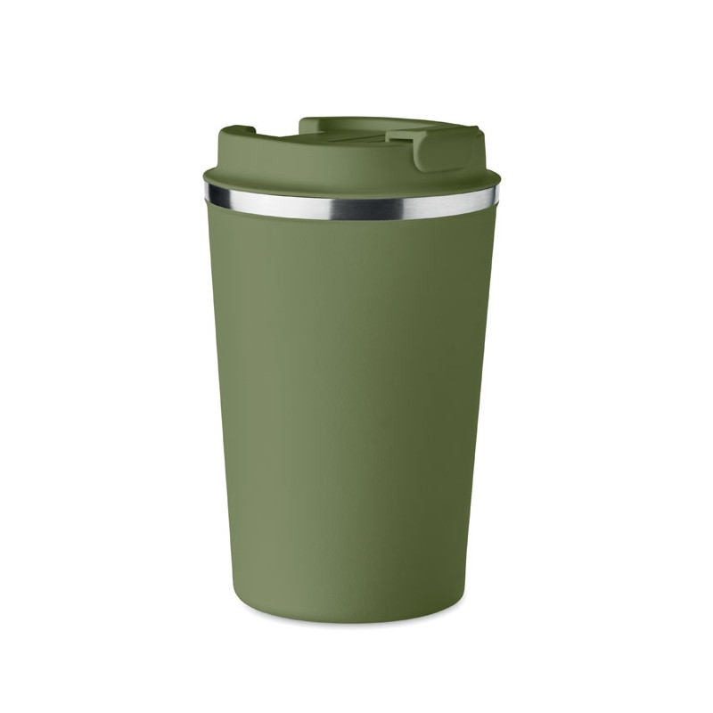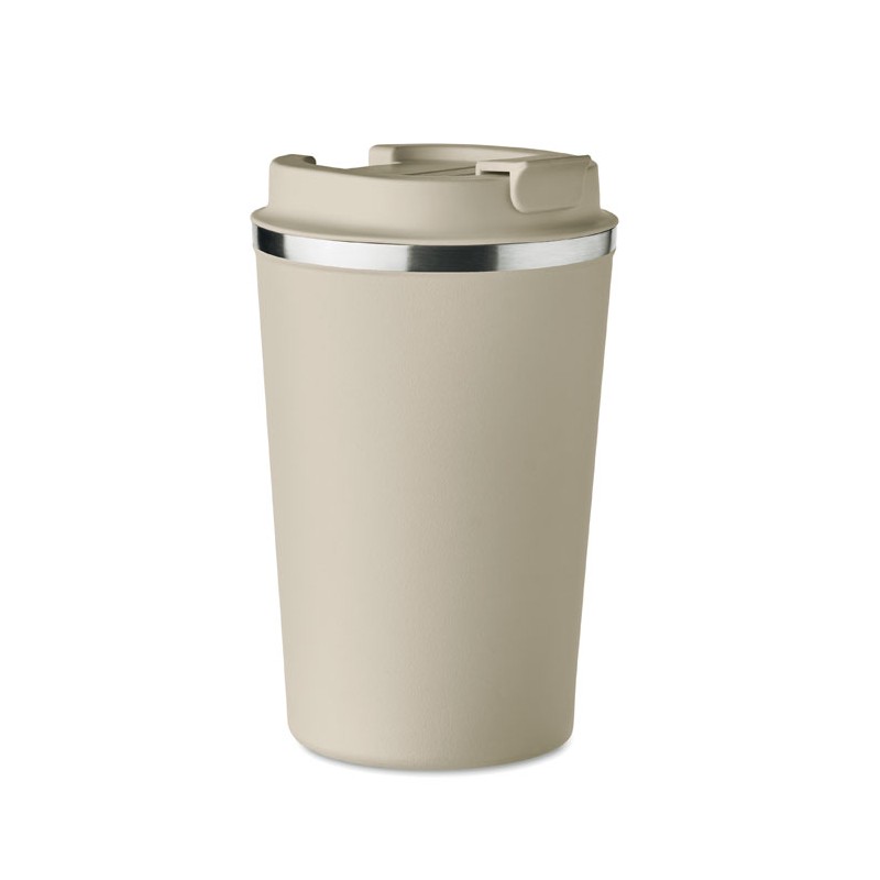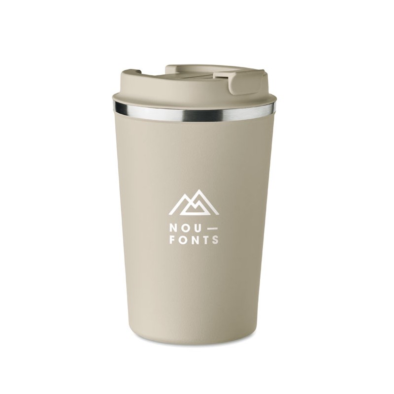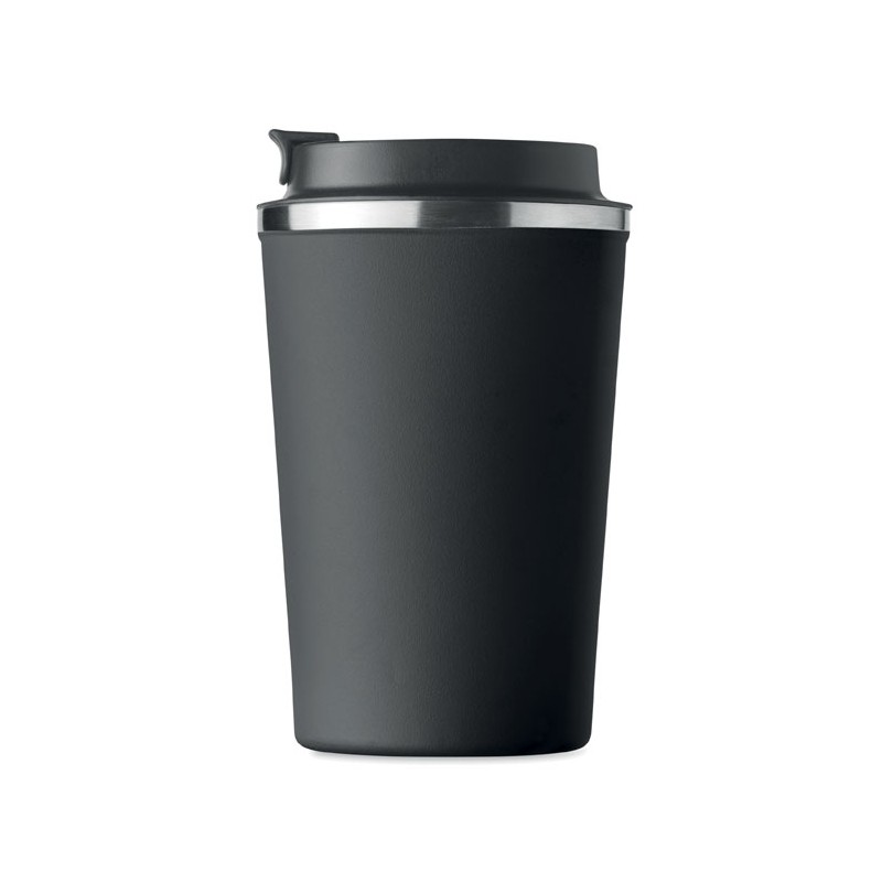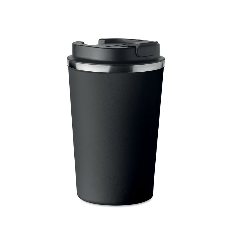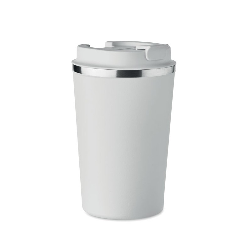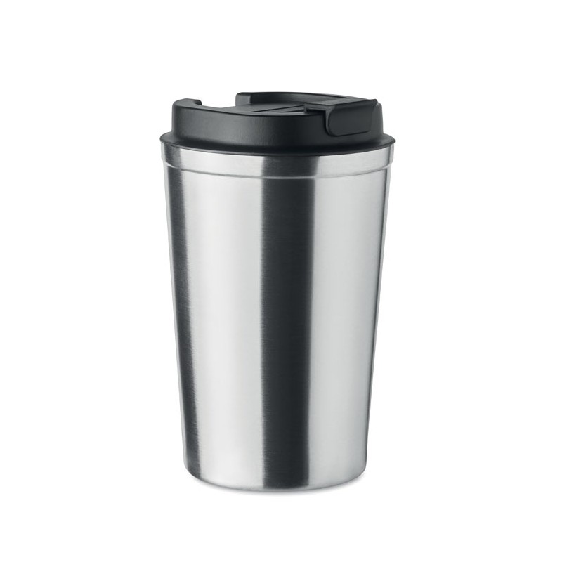 Double wall stainless steel tumbler with PP lid. Bring your favourite coffee, tea or other hot drink with you with this tumbler. Capacity: 350 ml. Leak free.