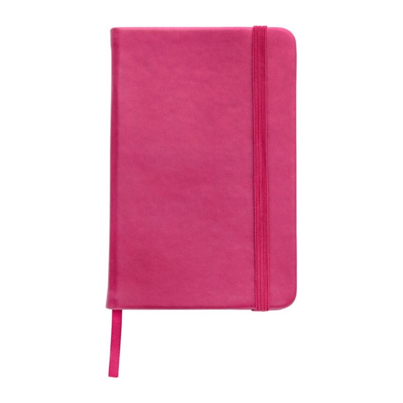 PU notebook (approx. A6), with 96 lined pages, ribbon marker, and elastic band over the cover. 14.1 x 9 x 1.6 cm