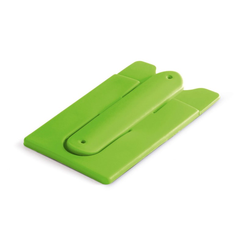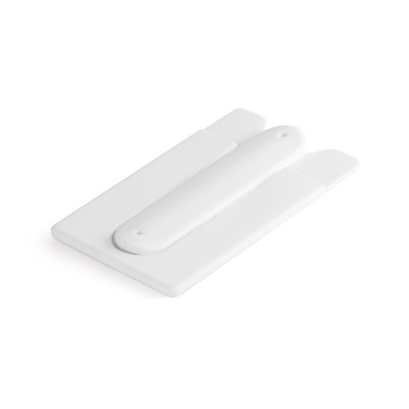 Silicone smartphone card holder with sticker on the back and smartphone holder. 57 x 96 x 5 mm