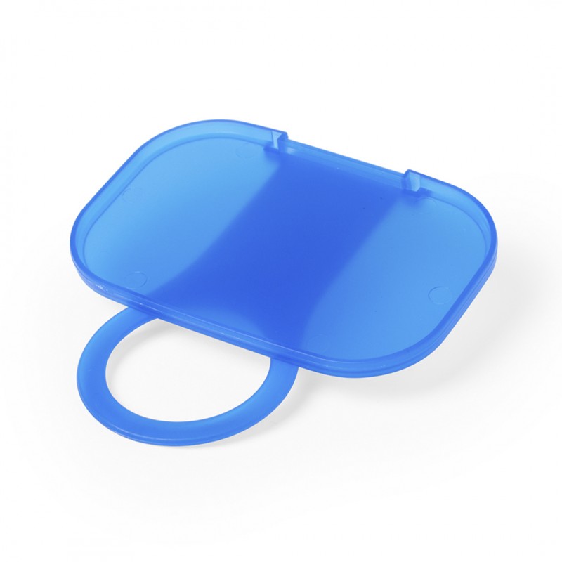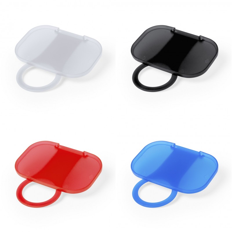 Original folding smartphone holder for wall plug. With body in translucent finish and especially designed for pad printing.