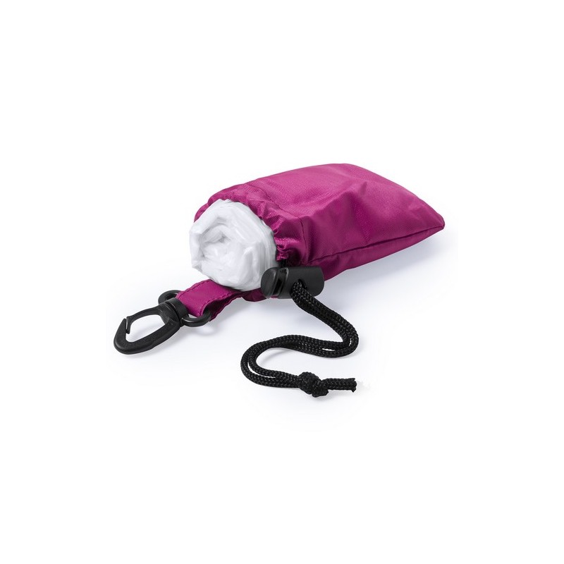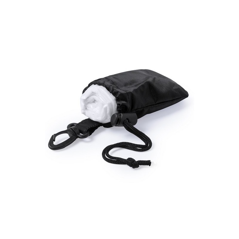 Adult poncho in LDPE material. In size 120x95cm and presented in polyester cover in a wide range of bright tones, especially designed for printing. Self-sealing drawstring bag with adjustable accessory and carrying carabiner.