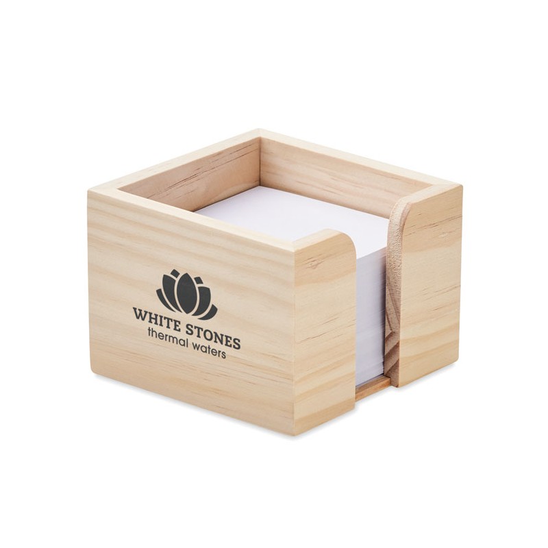 Memo cube dispenser made from wood. With this desk accessory, you'llalways have something to write your important notes on. It comes with600 white sheets in 70 gr/m². The natural wood look makes this cube astylish accessory at your home office or at work. Size 9x9 cm. Wood is anatural product, there may be slight variations in colour and size peritem, which can affect the final decoration outcome