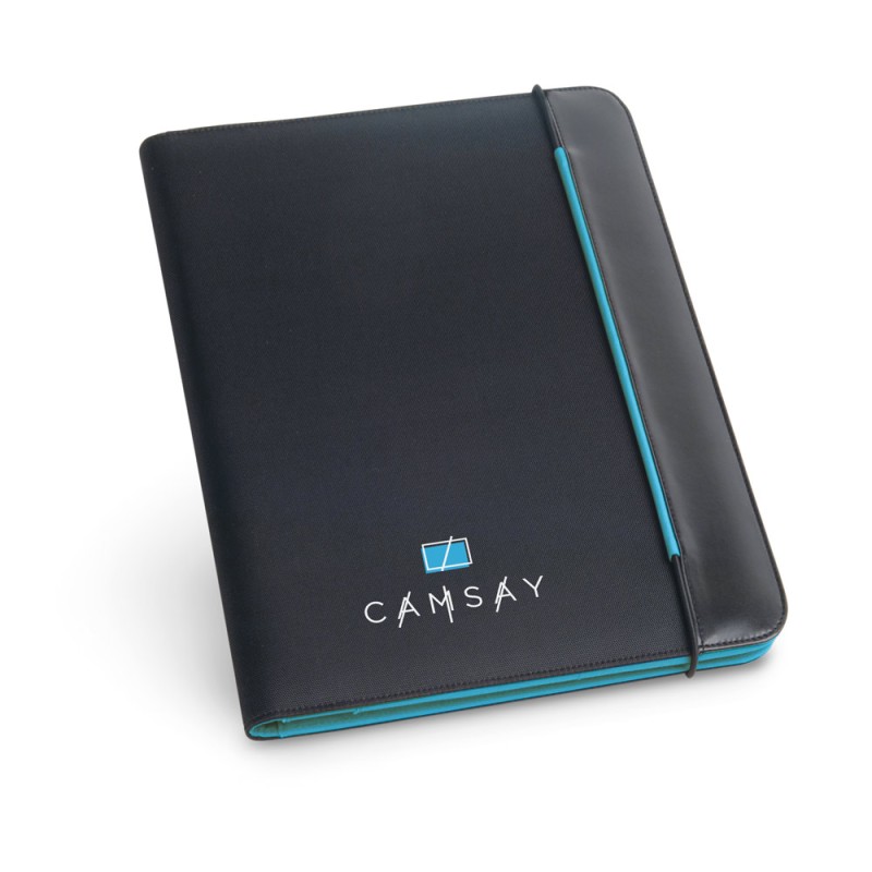 A4 folder in PU and 800D with microfibre interior. with elastic band closure. Contains a 40 lined pages pad (60 g/m²), 3 pockets and a pen holder (pen not included). 245 x 315 x 15 mm