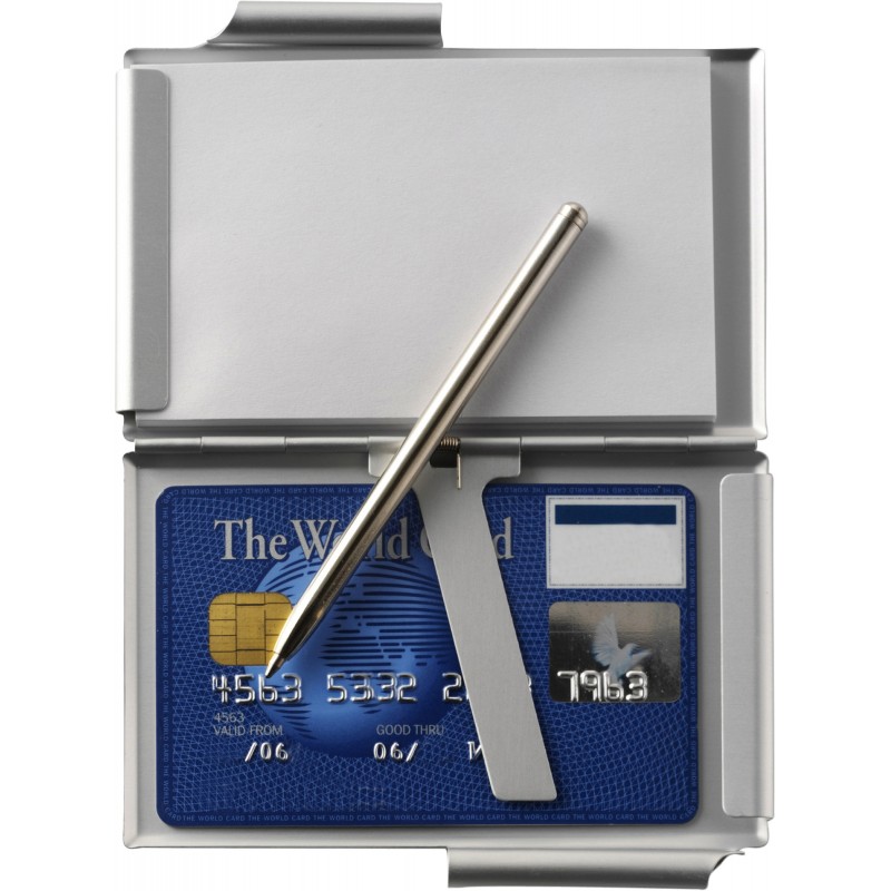 Μεταλλική καρτοθήκη, με μπλοκ και στυλό