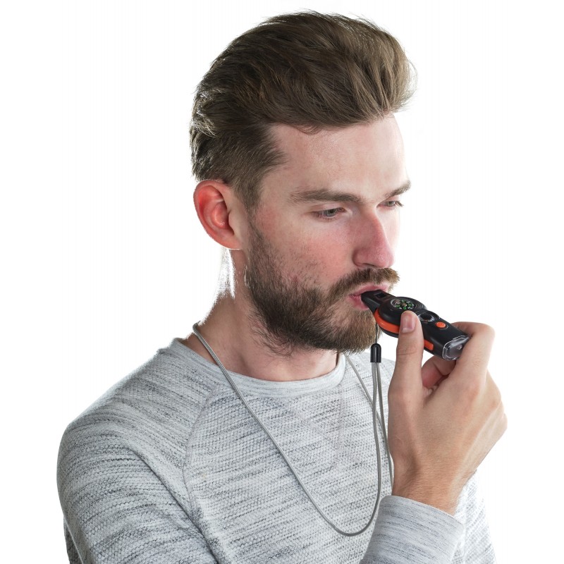 Σφυρίχτρα, φακός, θερμόμετρο σε F, μεγενθυτικός φακός, φακός, καθρέπτης και κορδόνι.