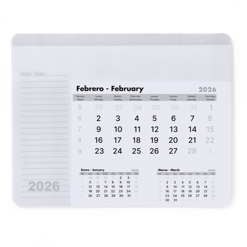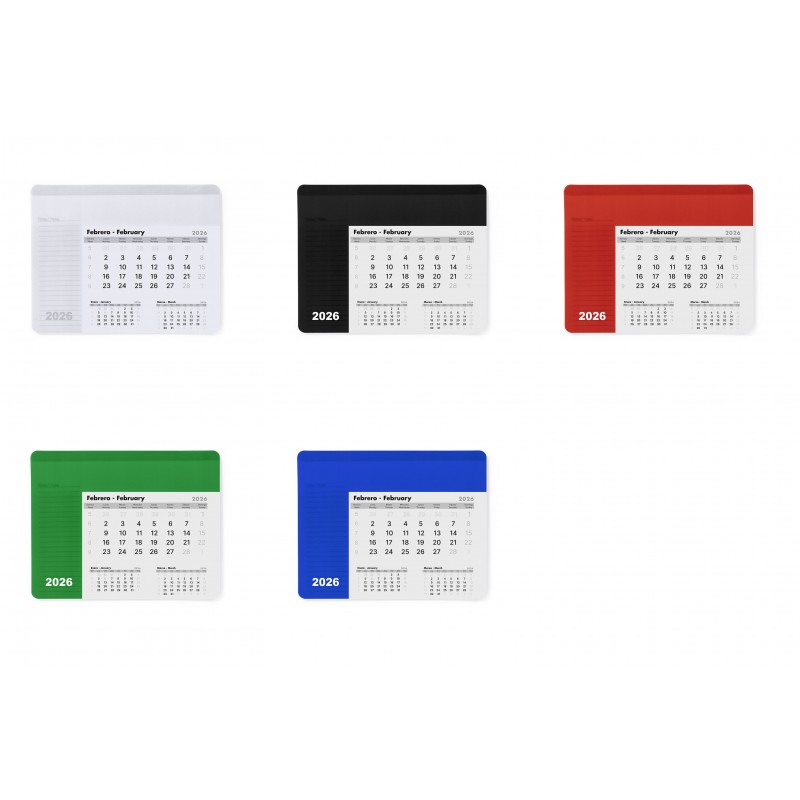 Calendar mousepad in assorted colors and soft PVC finish. Design current month in/previous month/next month. Padded non-slip base.