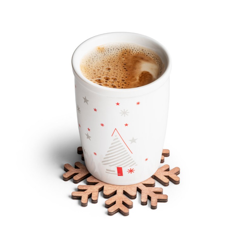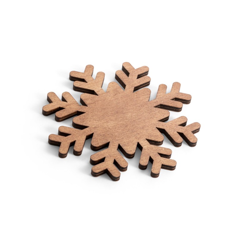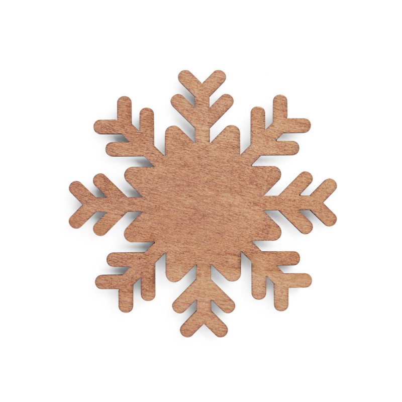 Set of 4 plywood snowflake shaped coasters. Supplied in a kraft paper box. 100 x 100 x 5 mm | Box: 105 x 105 x 20 mm.