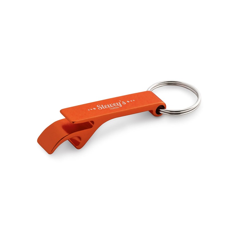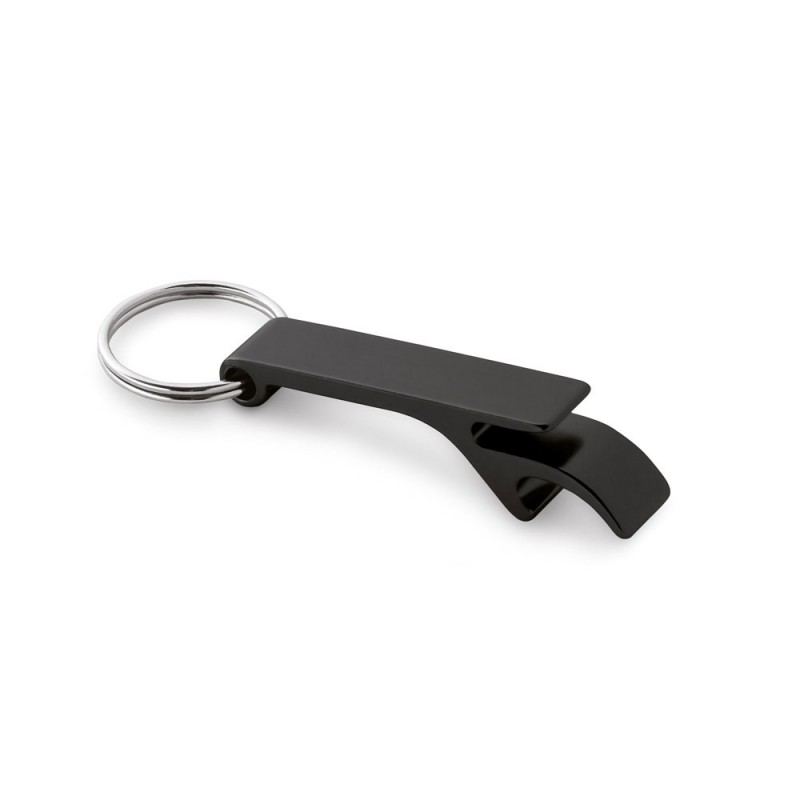 Aluminum keyring with bottle opener. 11 x 60 x 15 mm