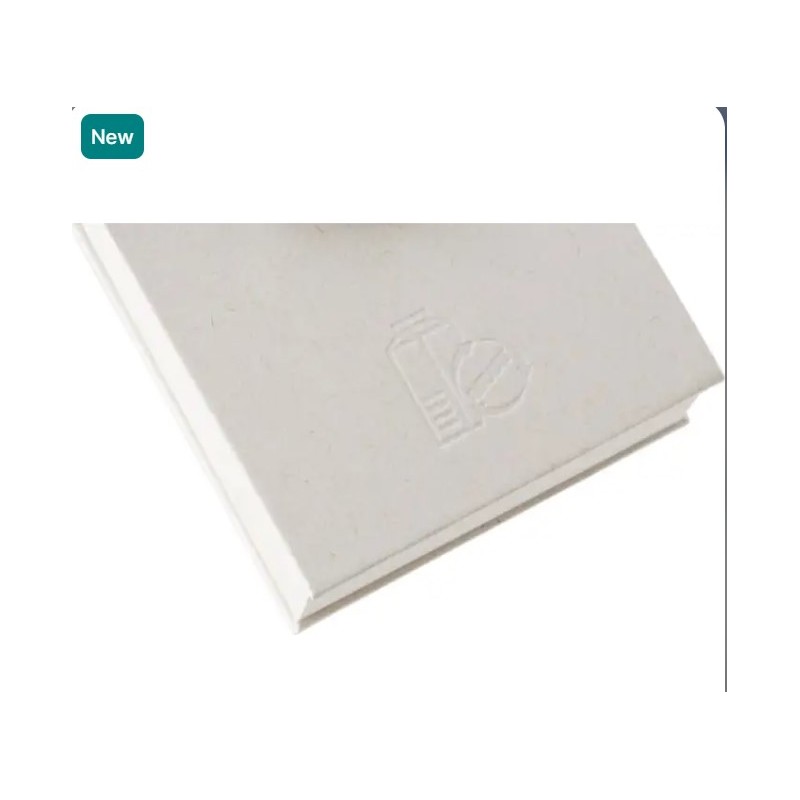 Recycled milk carton note block with 200 plain sheets. Made of 70% recycled milk carton and 30% recycled paper. Including the milk carton hot stamp on the bottom of the cover.