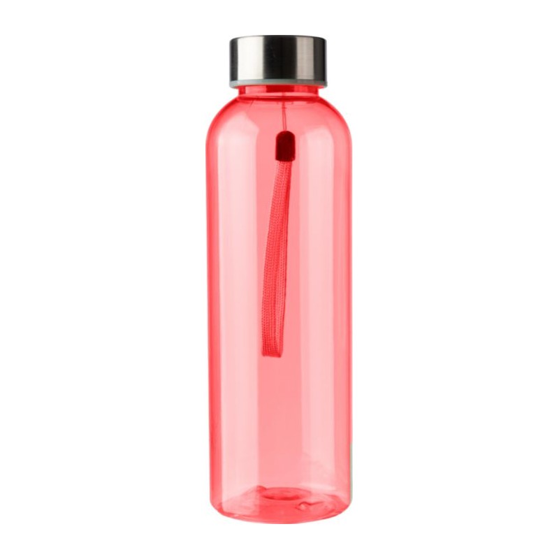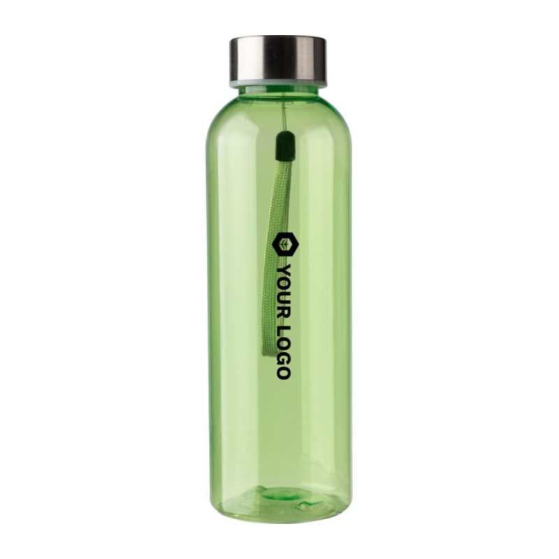 rPET drinking bottle (500 ml) with stainless steel lid and wrist cord.