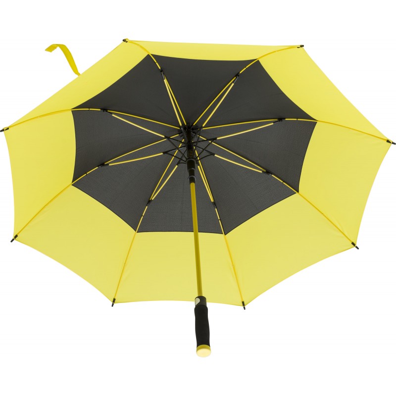 Pongee (190T) umbrella with eight panels. Fibreglass frame and EVA handle. Stormproof.