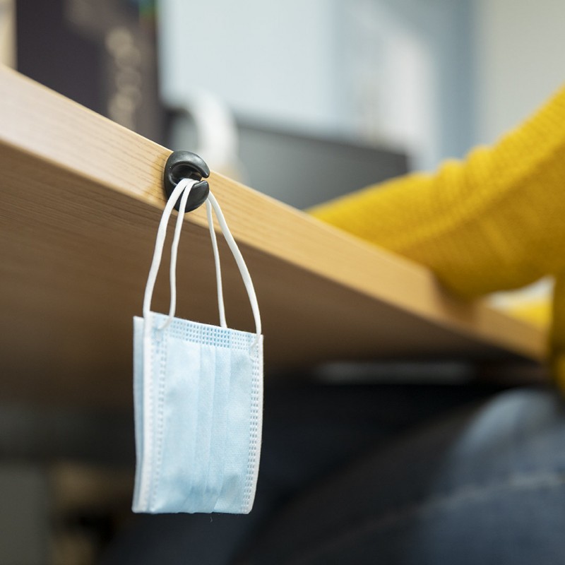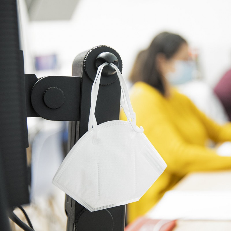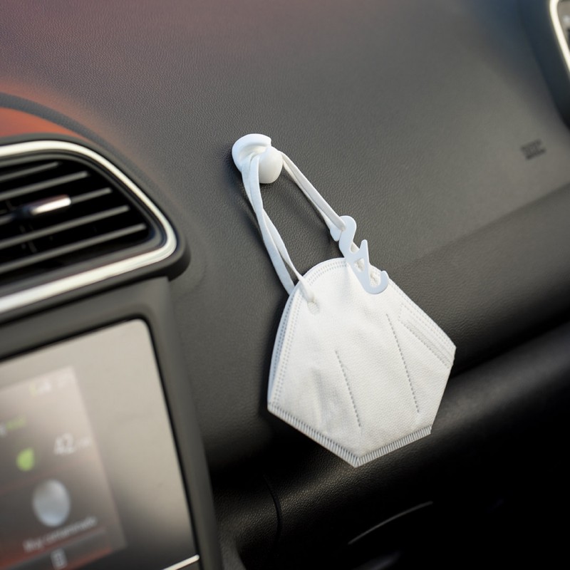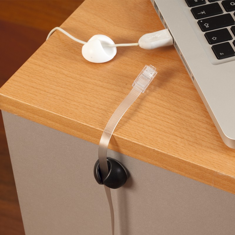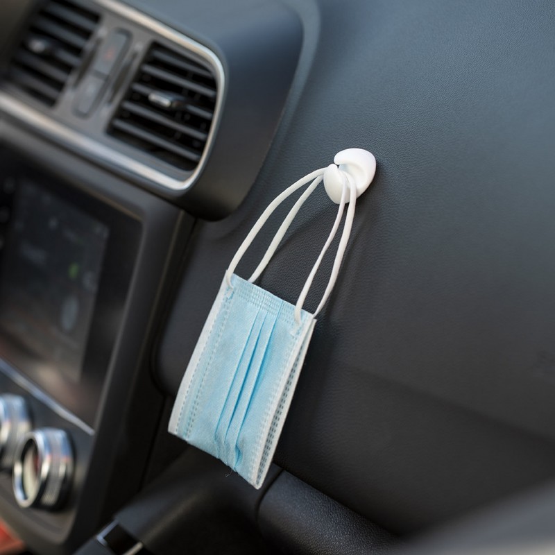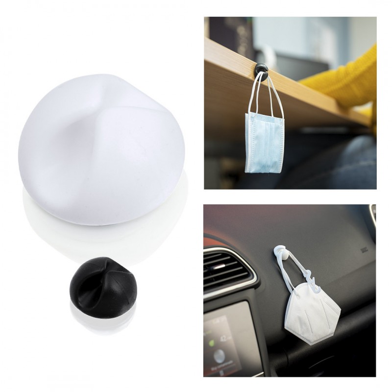 Multifunction adhesive holder in soft rubber. Valid as a bracket for face masks, lanyards, cable holder ... Available in black and white finishings.