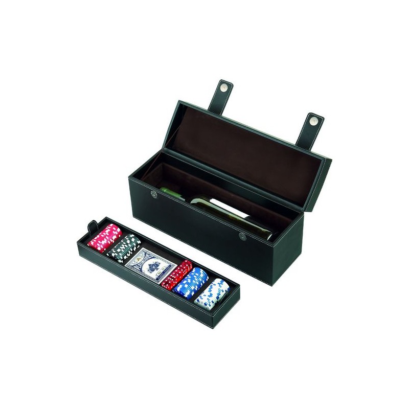 Διαφημιστική θήκη κρασιού, με τράπουλα, μάρκες και ζάρια.