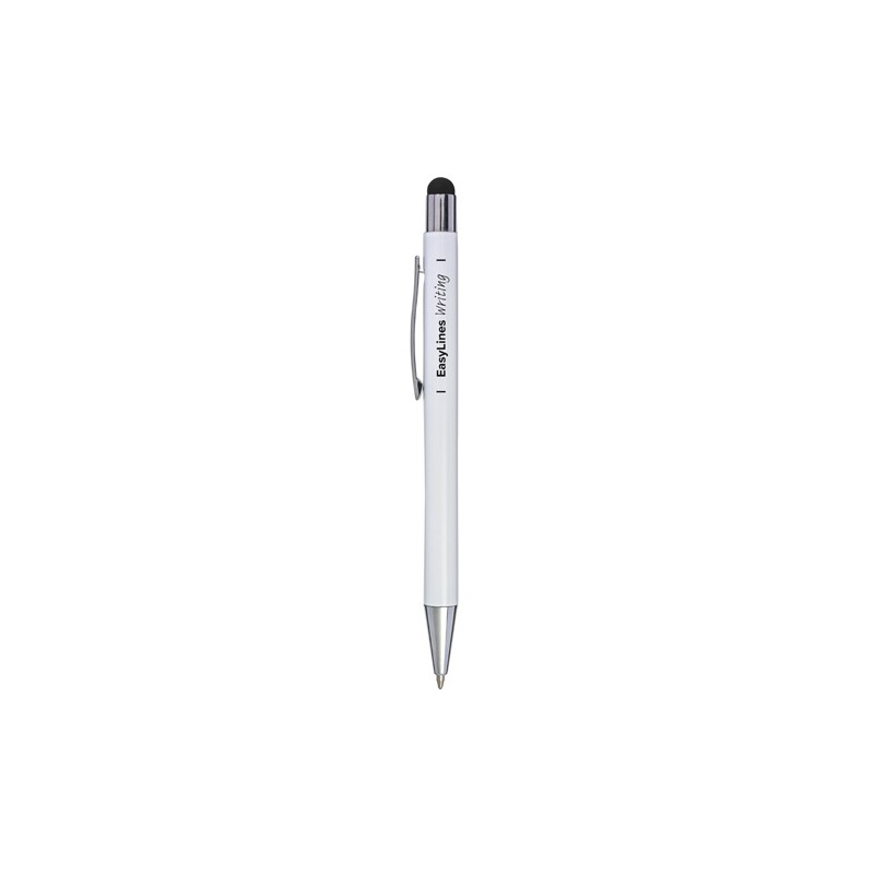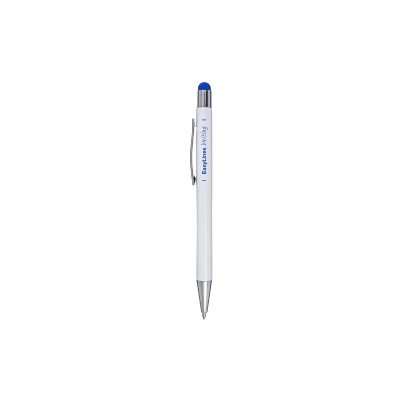Aluminium and ABS ballpen with rubber tip for capacitive screens. When the pen is lasered, the imprint will show in colour. Blue ink.
