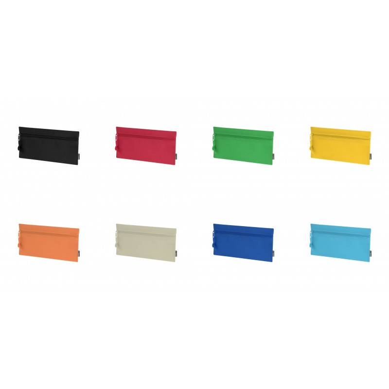 Case in RPET 600D polyester. With front zipper closure, matching metal puller, and matching cord. RPET label on tag. RPET material is made from recycled plastic to promote the reuse of plastic waste and help the planet's sustainability.
