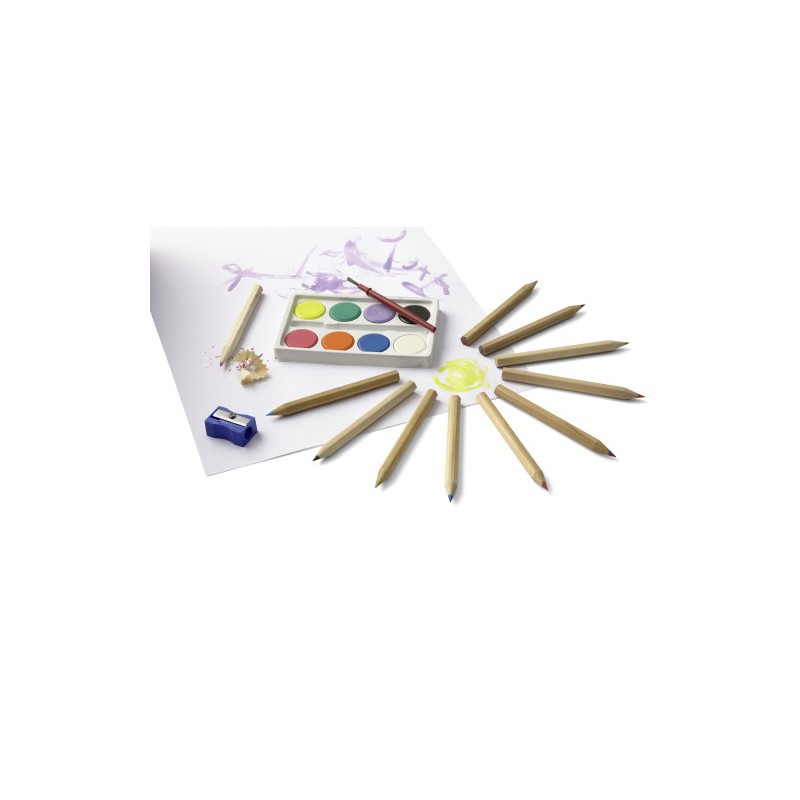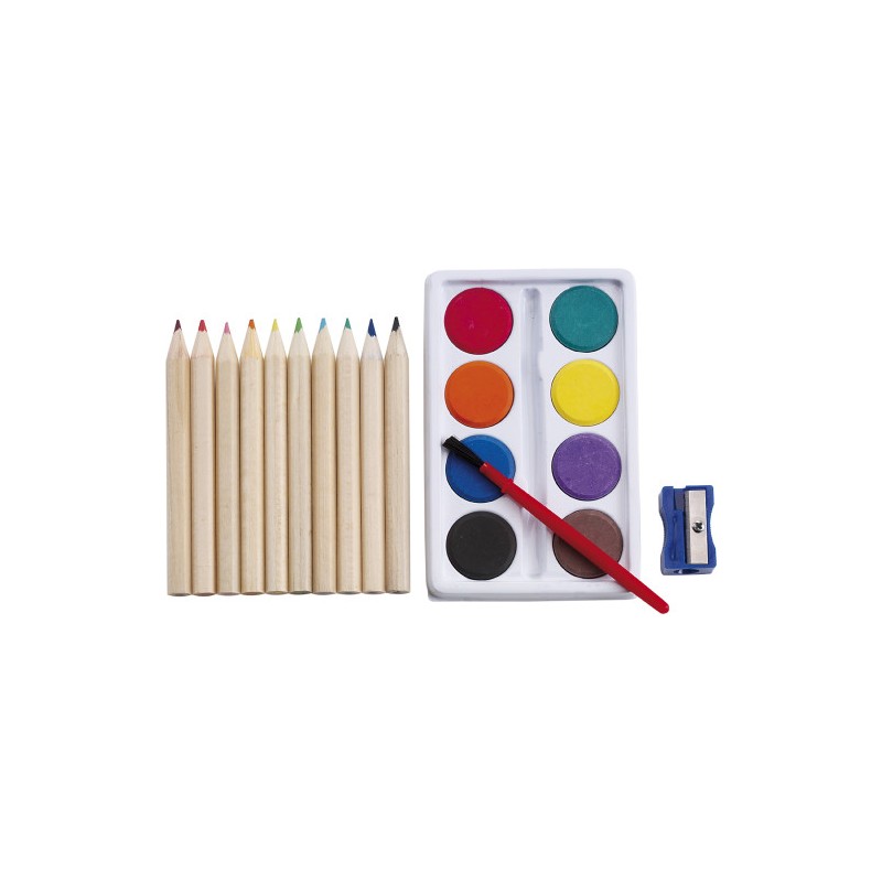 Σετ ζωγραφικής, αποτελούμενο από ξυλομπογιές, νερομπογιές, πινέλο και ξύστρα