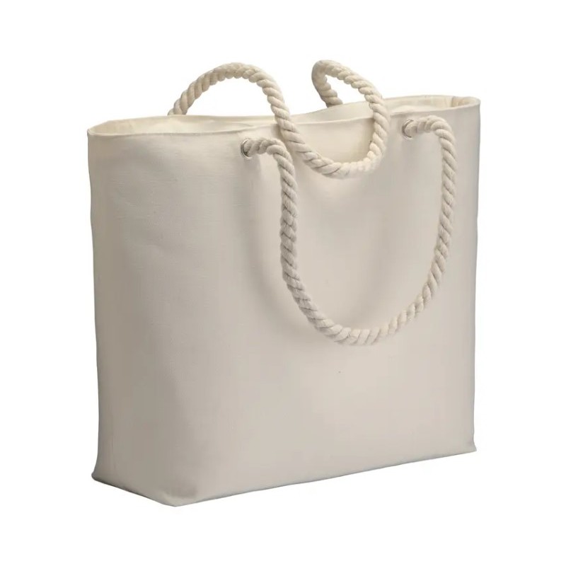 280 g/m2 recycled cotton beach bag, rope handles and gusset