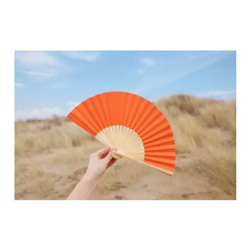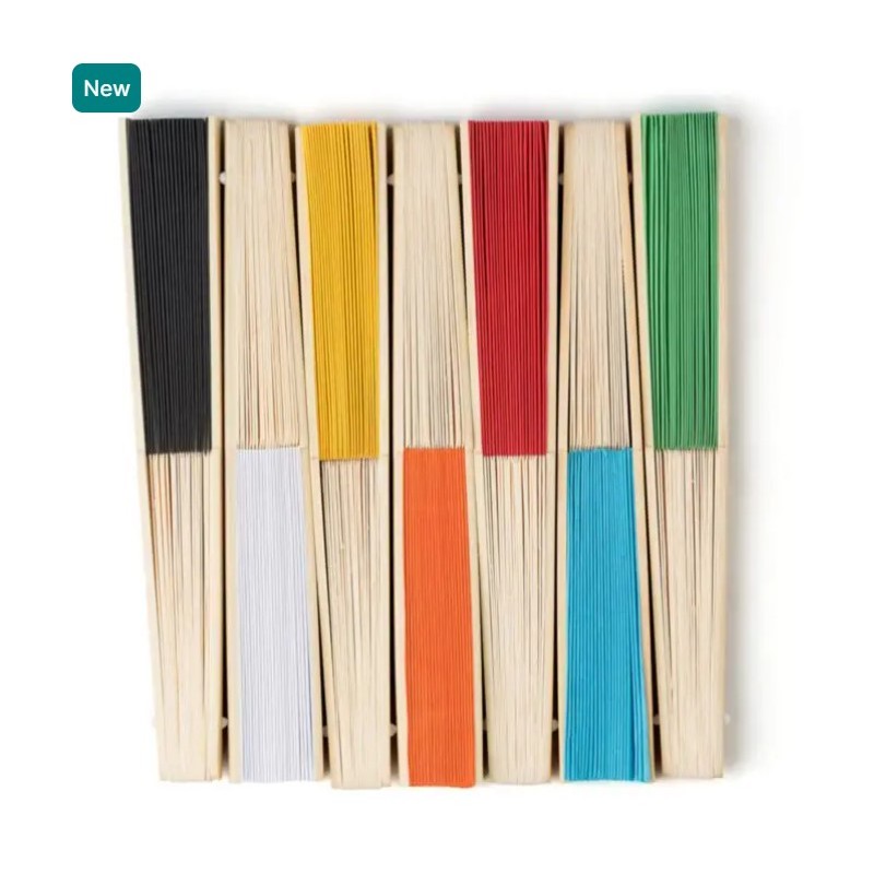 Bamboo hand held fan with paper fabric. Packaged in bulk.