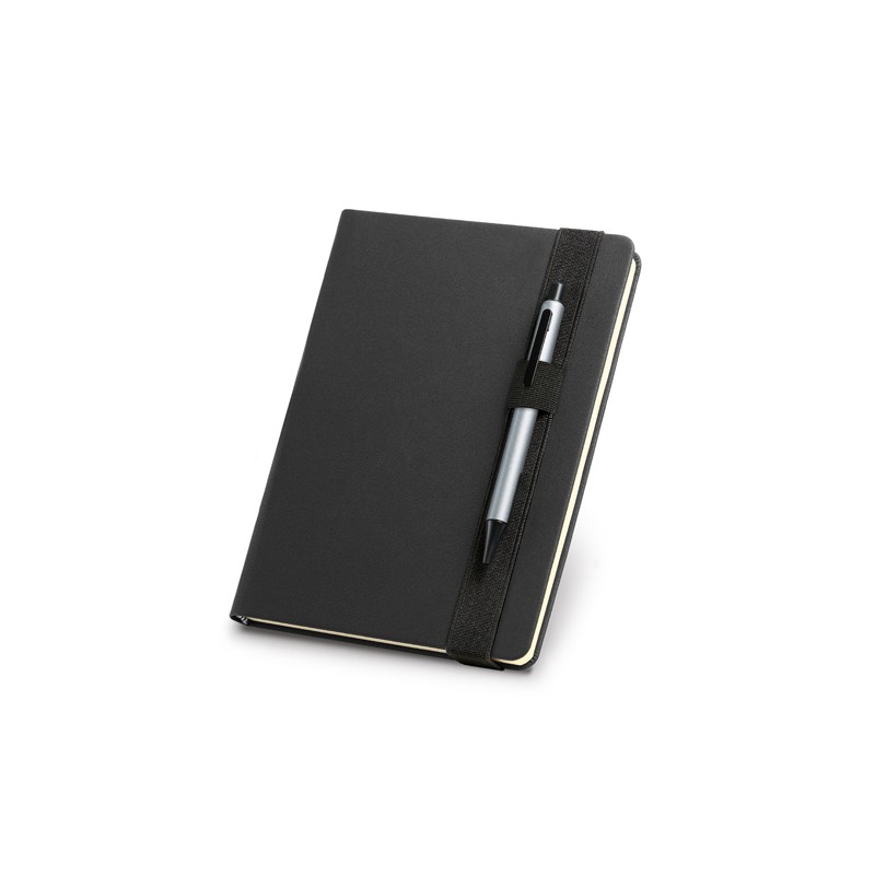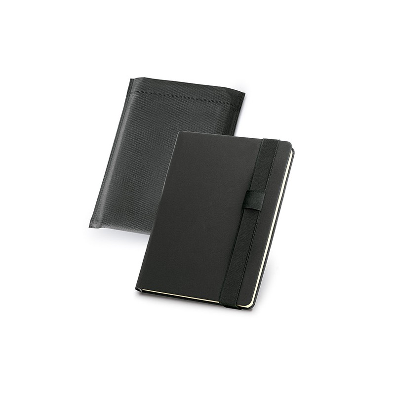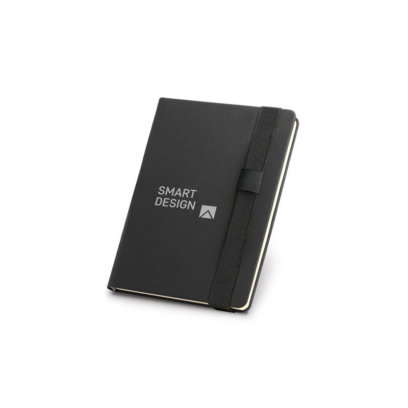Διαφημιστικό μπλοκ (Α5) Smart Design. Imitation leather. Hardcover. With pen holder and 140 ivory plain sheets. Supplied in non-woven pouch. Ball pen not included. 145 x 210 mm